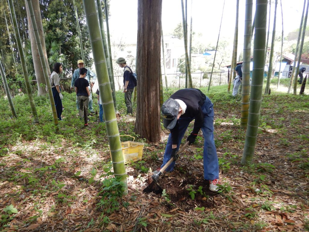 そこで、管理作業の一環としてたけのこの間伐が必要となります。この作業に利用者の皆さんも参加していただき、掘り取ったたけのこは持ち帰っていただく作業体験会を例年行っています。
