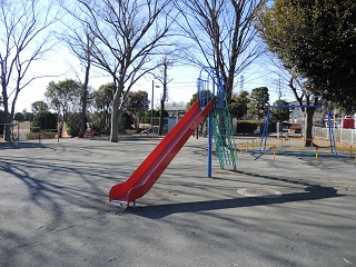 浄水場正門脇にある遊具広場。小雀公園の歴史はここから始まりました。