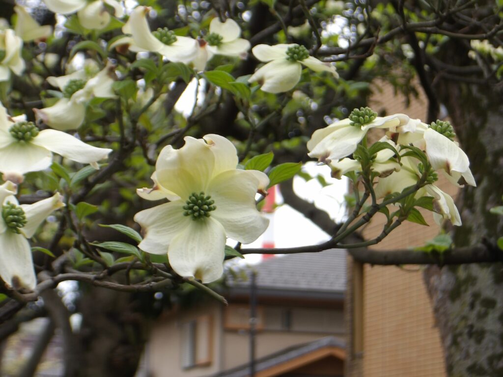 ハナミズキ(花水木)は、北米原産のミズキ科落葉高木です。4〜5月に花を咲かせ、秋には紅葉と赤い実が楽しめます。