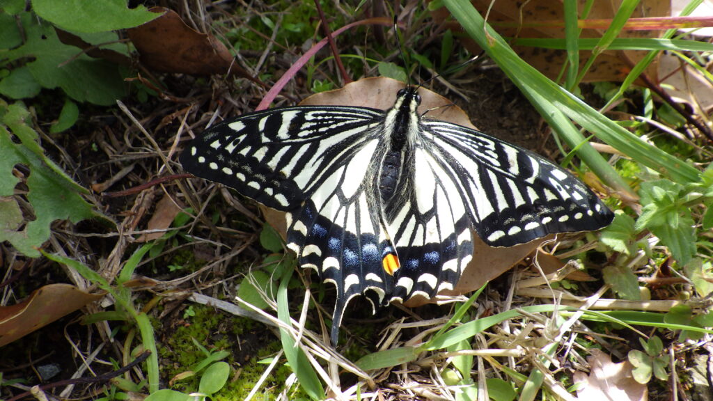 先週4月18日の土曜日に、春の自然観察会を開催しました。今回6名もの方々にご参加いただき、講師の先生もやる気まんまんでたっぷり解説していただきました。皆さまありがとうございました。さて、その観察会でアゲハ蝶を見かけました。いわゆる春型のナミアゲハです。これが夏になるとひらひら飛び回っていて観察もままならないのですが、まだ気温もさほど上がっていないこの季節が幸いしてか、私たちにその美しい模様を見せてくれていました。