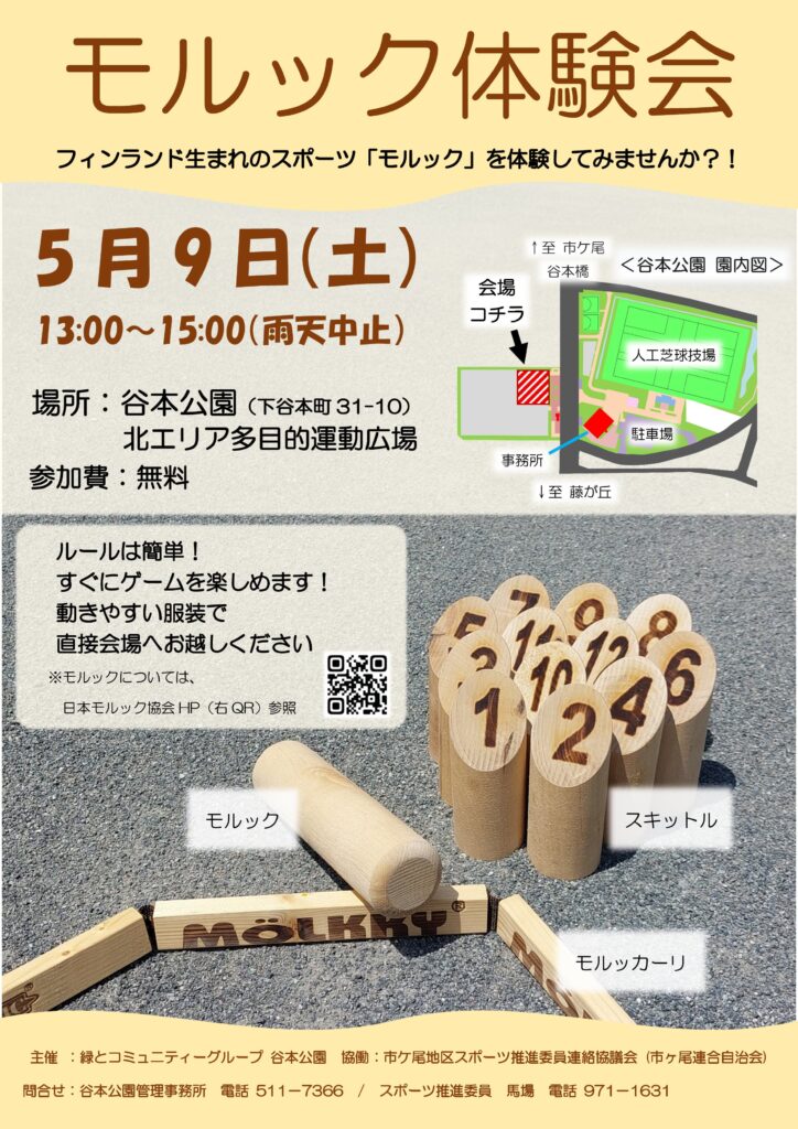 さて、GW明けの9日に近年あちこちで目にする機会のある、モルックの体験イベントを開催します。
