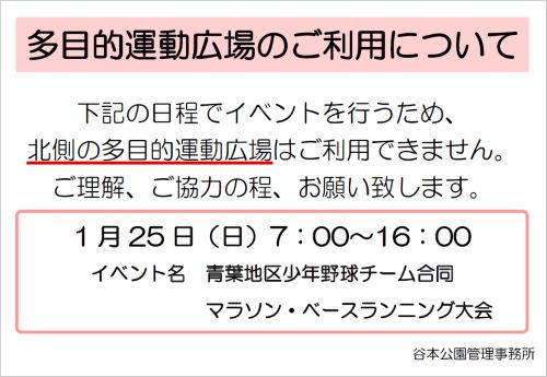 多目的運動広場年間予定表を掲載しました